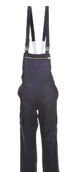 Feuerwehr-Latzhose HuPF Teil 2, 50% KERMEL/Lenzing Viskose FR, DIN EN ISO 11612:2015-11, dunkelblau/schwarzblau. Brustlatz und hochgezogener Nierenschutz, verstellbare Hosenträger, Hosenschlitz mit Reißverschluss. 2 aufgesetzte Seitentaschen, 1 Gesäßtasche mit Patte und Knopf, 2 Blasebalgtaschen mit Patten und verdecktem Klettverschluss. Bundweitenverstellung, öl- und wasserabweisende Ausrüstung, waschbar, Größen 44-66, K- und L-Größen entsprechend