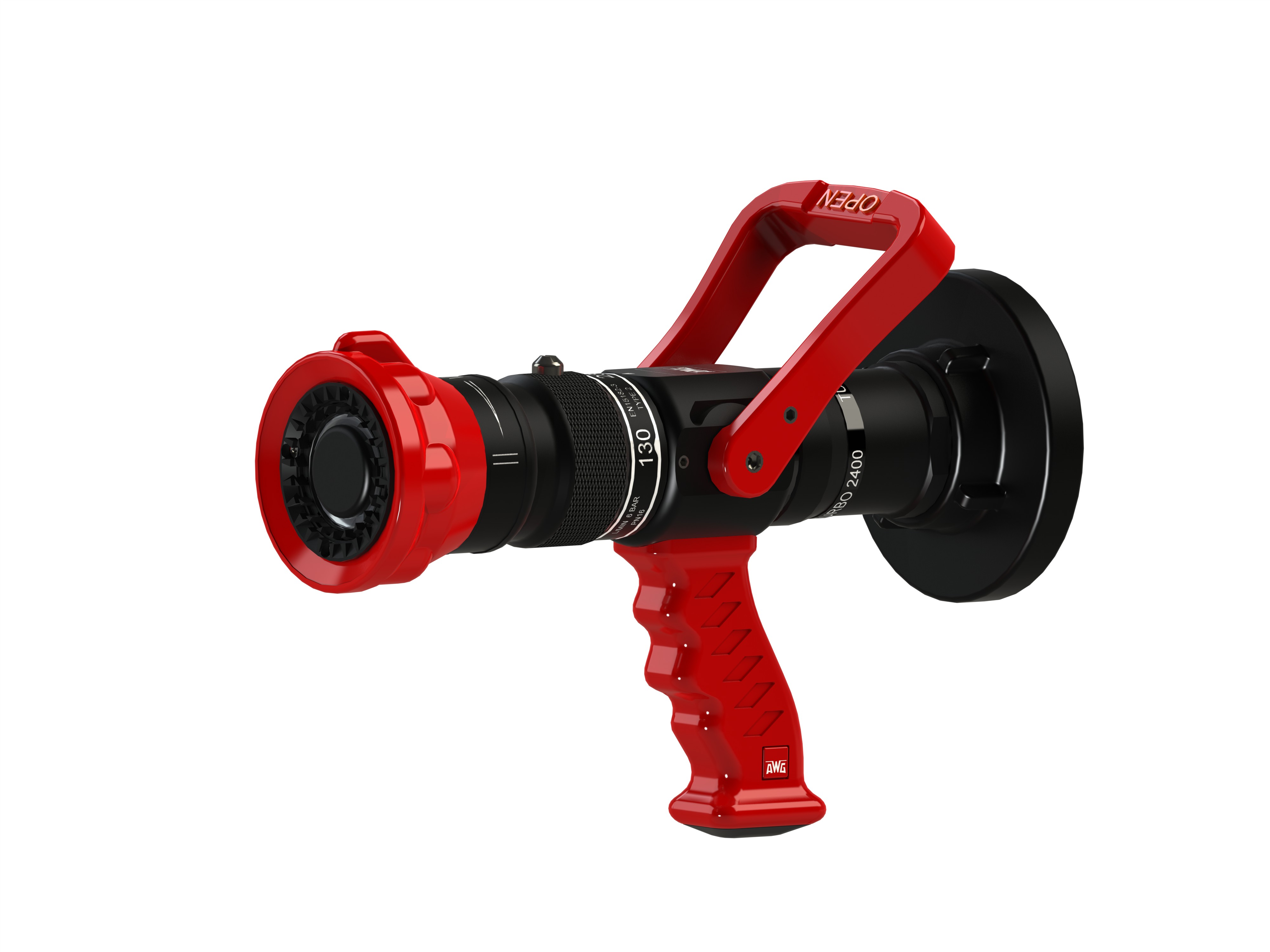Hohlstrahlrohr Turbo-Spritze 2400 B, EN 15182-2, Funktions-kategorie 3, Anschluss Storz-B. Farbe schwarz/rot. Einstellbare Durchflussmengen 130/235/400 l/min. bei 6 bar. Wasserwinkel 0-120 Grad. Spülstellung. Geeignet für Voll-/Sprühstrahl. Maße (LxBxH): 320 x 126 x 245 mm, Gewicht ca. 2,70 kg