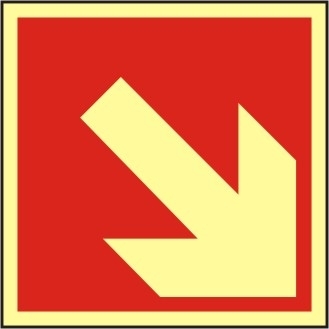 Brandschutzzeichen Richtungsangabe aufwärts/abwärts, ISO 7010, Kunststoff nachleuchtend selbstklebend, Grund rot, Symbol und Rand gelb, Format: LxH 200 x 200 mm. (Nur in Verbindung mit einem anderen Brandschutzzeichen erlaubt.)