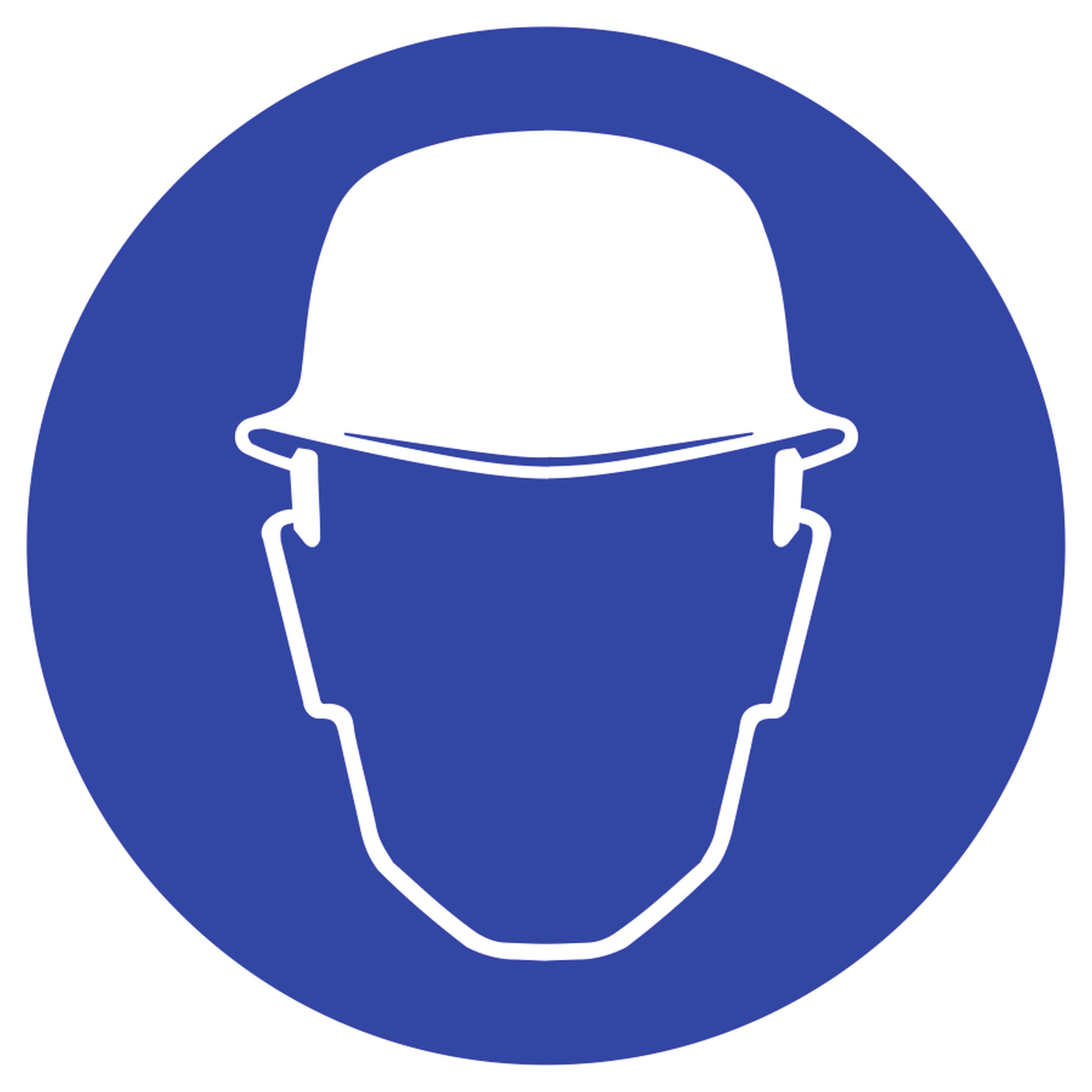 Gebotszeichen Schutzhelm benutzen, alte ASR A1.3 (2007), BGV A8, M 02, Folie selbstklebend, Grund blau, Symbol und Rand weiß, Format: Ø 200 mm.