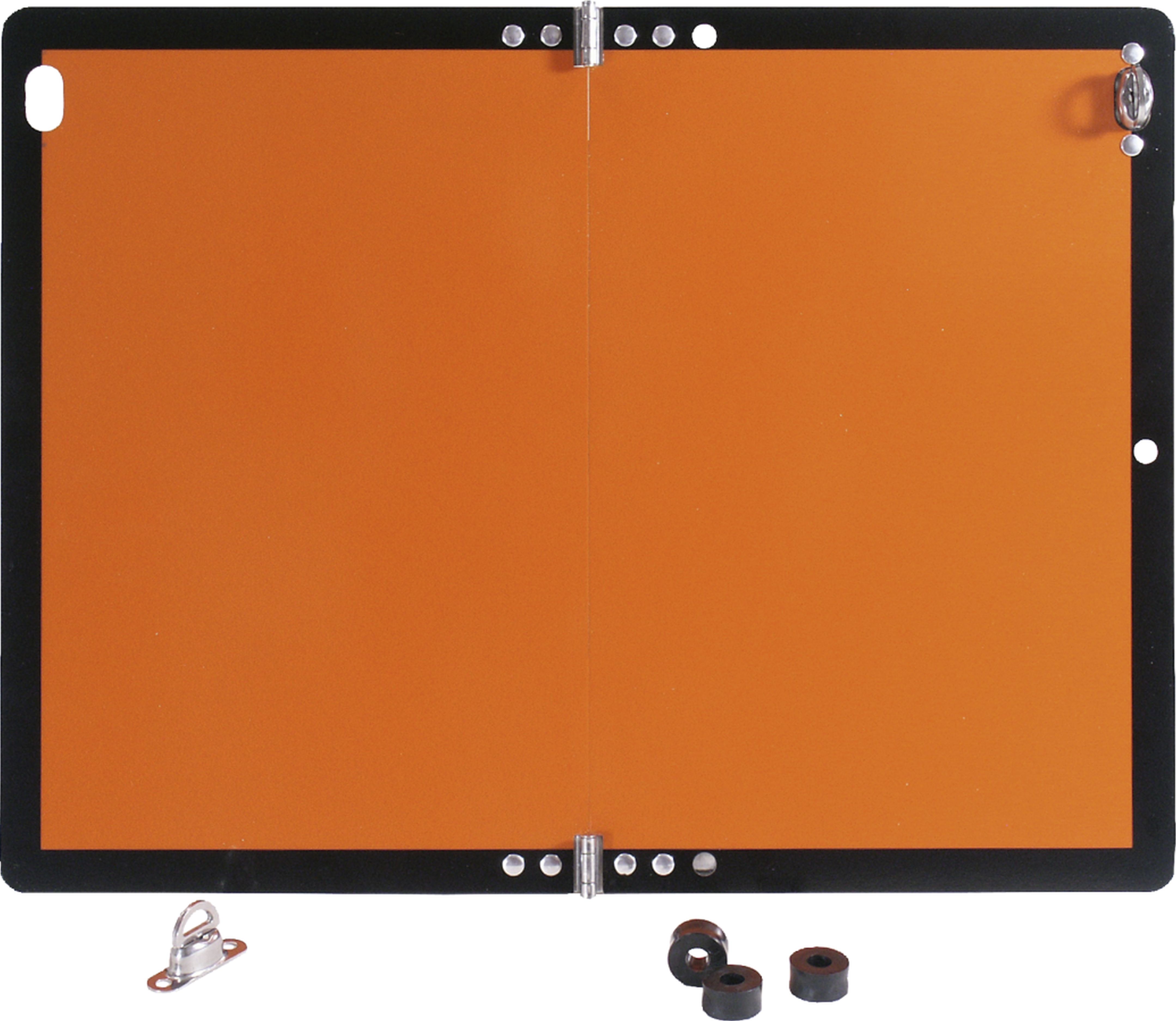 Gefahrgutwarntafel gemäß GGVSEB/ADR, 400 x 300 mm, klappbar, Aluminium, Vorderseite: orange reflektierend RA1, A, Scharniere und Drehverschlüsse aus Edelstahl, inkl. Drehverschluss zur Montage am Fahrzeug