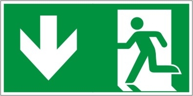 Rettungszeichen Rettungsweg durch Notausgang 300x150mm (E001+E005) Folie ISO 7010