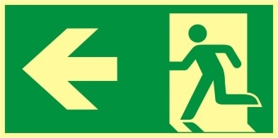 Rettungszeichen Rettungsweg links 400x200mm (E001+E005) Kunststoff-Nachleuchtend-Selbstklebend ISO 7010