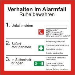 Sicherheitsaushang Verhalten im Alarmfall 200x200mm Folie ISO 7010