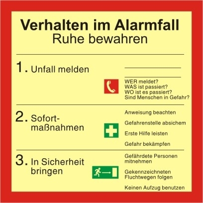 Produktinformationen "Sicherheitsaushang Verhalten im Alarmfall 200x200mm Kunststo"