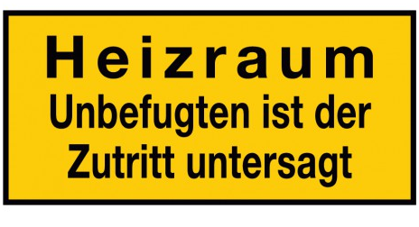 Warntafel "Heizraum-Unbefugten ist der Zutritt untersagt" Kunststoff, 170x350mm, Schwarze Schrift gelber Grund