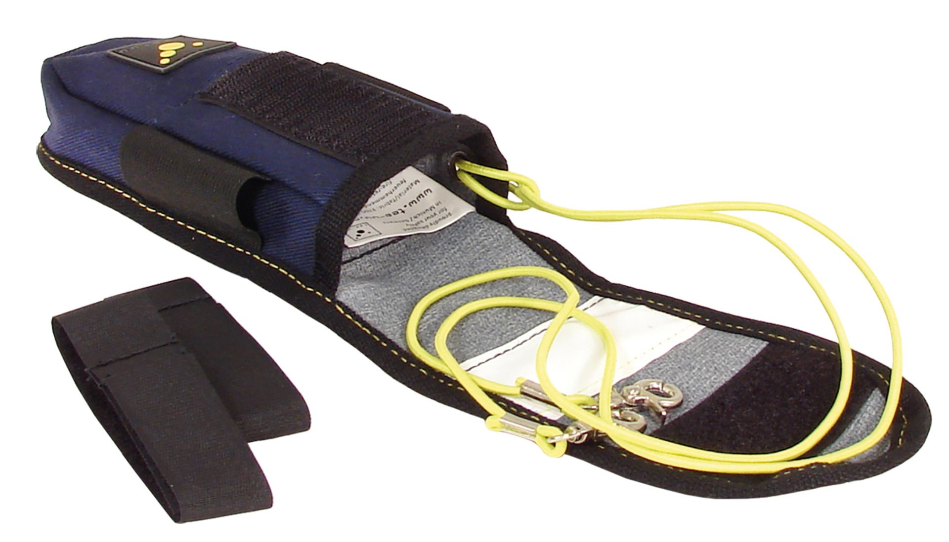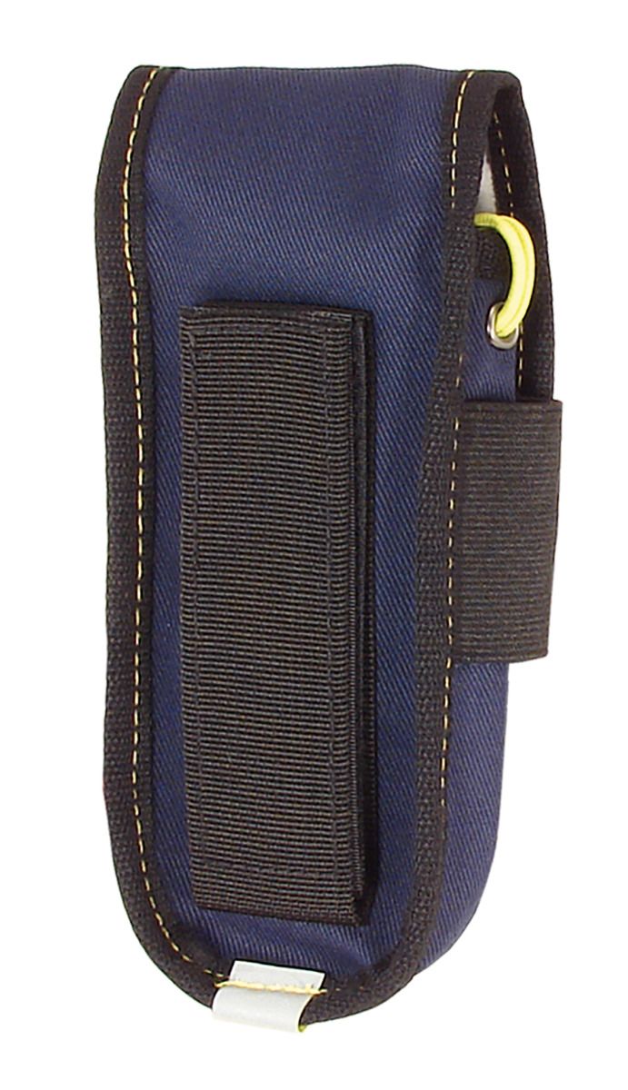 MICRO Holstertasche. Schlanke Form zur Aufnahme einer Rettungsschere und/oder einer Rettungsschlinge, 2 Halteschnüre 40 cm mit Karabinerhaken sichern die Bestückung, 2 außenliegende Schlaufen für Holzkeile, Holster mit Klettschlaufen-System zur Befestigung am Schulter- oder Hüftgurt des Atemschutzgerätes oder am KOMBI-Leinenbeutel Art.700793, Beschriftungsfeld auf Deckelinnenseite, dunkelblau, Gewicht 80 g, Maße HxBxT 190x90x30 mm (Bestückung nicht im Lieferumfang enthalten), Material: 370G TEC Fire Retardant