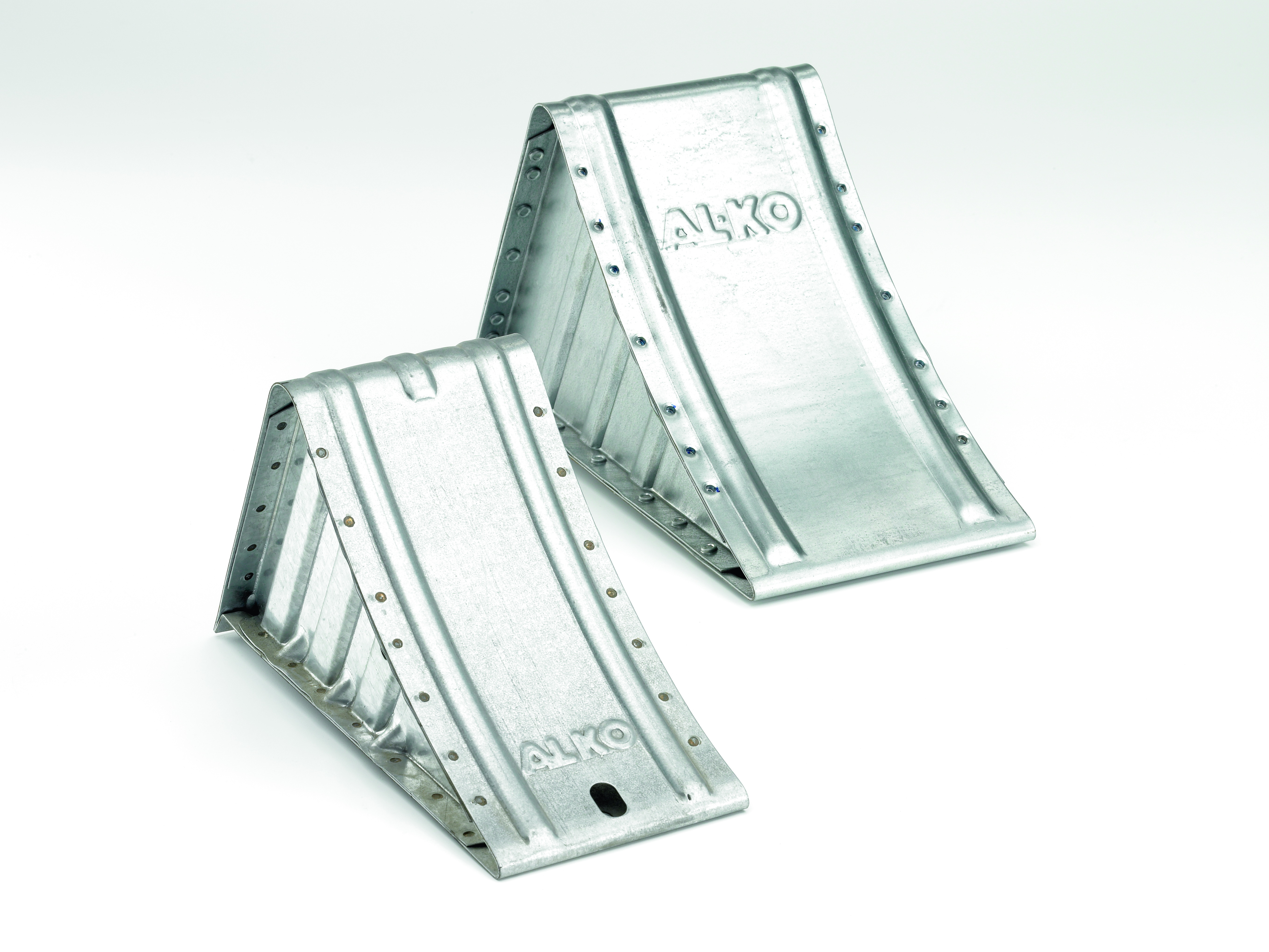 Unterlegkeil NG 46 nach DIN 76051-1, aus Stahlblech, für Kraftfahrzeuge und Anhängefahrzeuge gem. § 41 StVZO, mit Griff. Radlast bis 5000 kg, Länge 380 mm Breite 160 mm, Höhe 190 mm, Gewicht ca. 3,00 kg.