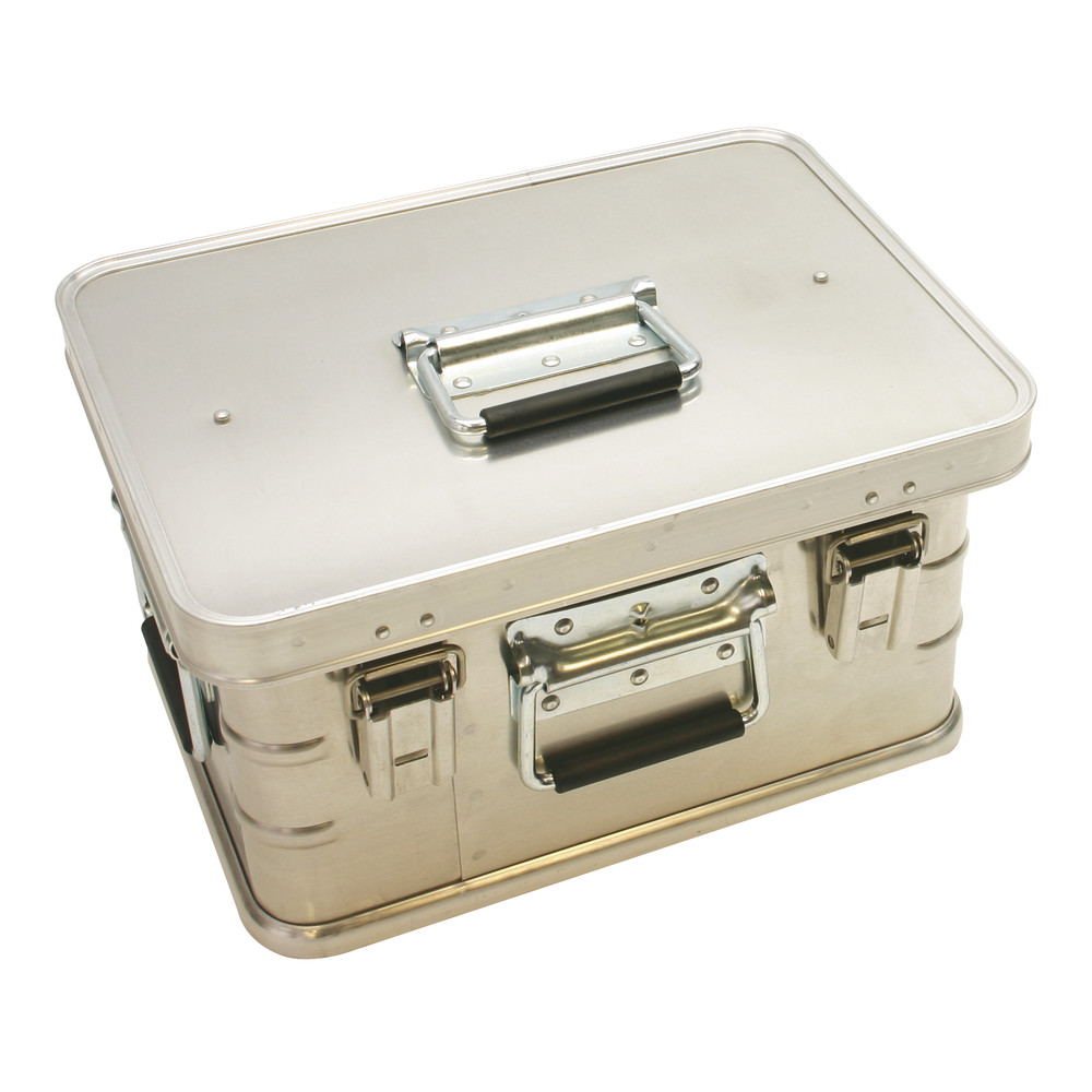 LM-Kasten für Feuerwehrgeräte DIN 14880 Größe 2 mit Deckel aus Leichtmetall, Außenmaße: BxHxT 300x220x400 mm. 4 Griffe. Gew.: 3,5kg