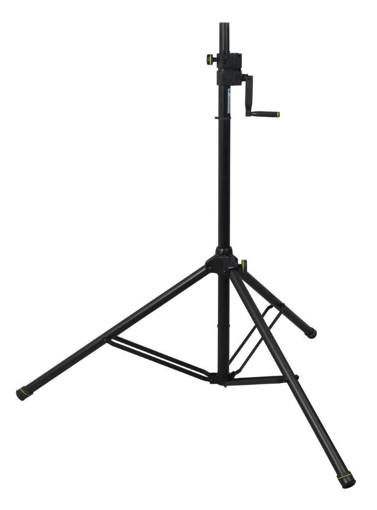 Stativ für ApolloLED ECO. Hohe Standsicherheit, Ein- und Ausfahren mittels Handkurbel, Höhe eingefahren 1,40 m, ausgefahren 2,40 m, Gewicht ca. 9,40 kg.