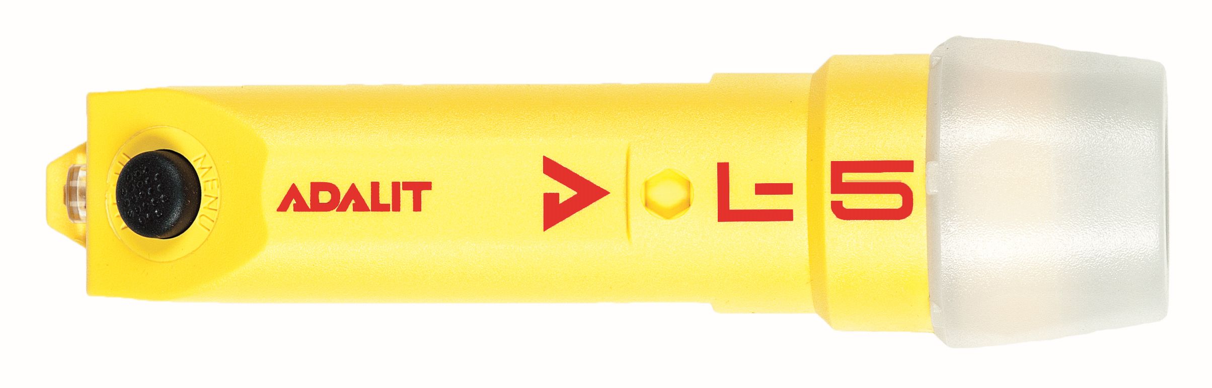 ADALIT®-Helmleuchte L-5 R POWER Akku-Version, ATEX-Kennzeichnung II 1 G Ex ia IIC T4 Ga / II 1 D Ex ia IIIC T85°C Da, mit Lithium-Ion Akku 3,7 V, hochintensive weiße LED 3 Watt zur Beleuchtung des Sichtfeldes, max. 150 Lumen für 4 h, im Sparmodus 30 h Betriebsdauer. Mit rückseitiger roter LED (blinkt alle 5 Sekunden) als eine Art Rücklicht. CE-Kennzeichen, Schutzart IP 67, ergonomischer Druckschalter, LxHxB ca. 150x38x44 mm, Gewicht inkl. Akku ca. 125 g. Clip zur Helm-Adaption.