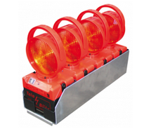Lade- und Transportbox für 4 Tele-Blitz hintereinander. Für alle Bordnetze geeignet. Edelstahlrahmen mit Einzelboxen. Maße: 234 x 696 x 190 mm, Gewicht ca. 6,50 kg