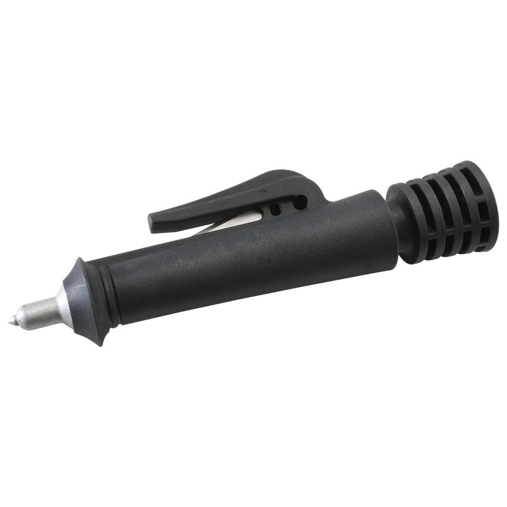 Gurtschneider und Scheibenzertrümmerer SafetyPen®. Farbe schwarz. Zum Zertrümmern von Scheiben bis 10 mm Stärke. Extrem harte Spitze, zuverlässiges Gurtmesser. Inklusive Fahrzeughalter mit Klebestreifen und Handgelenkschlaufe. Länge 113 mm, Gewicht 102 g